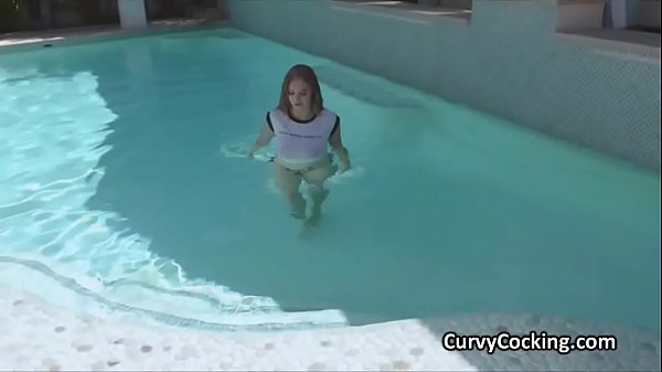 Мокрые большие сиськи давятся членом в бассейне