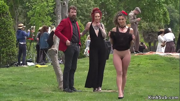 Обнаженная рабыня гуляла по парку