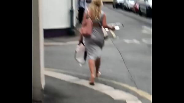 Сексуальная блондинка в стрингах идет по улице