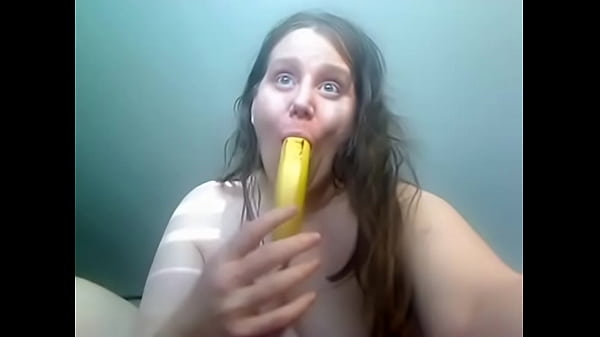 Девушка играет с бананом в любительском видео