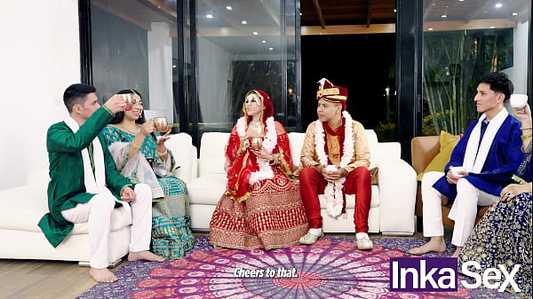 Индуистская свадьба чудай заканчивается оргией между сводными сестрами и отчимами. 11 мин.1440p