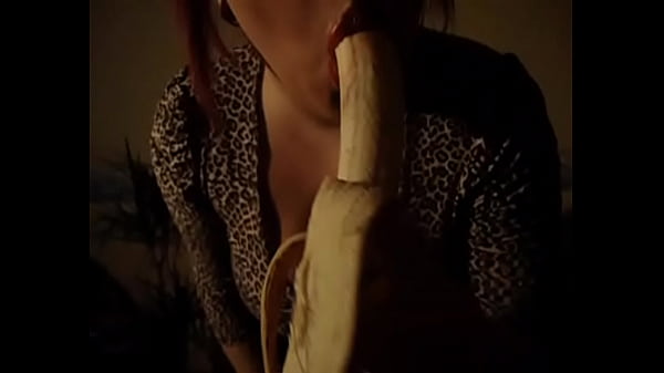 Возбужденная сучка с большими губами сосет банан
