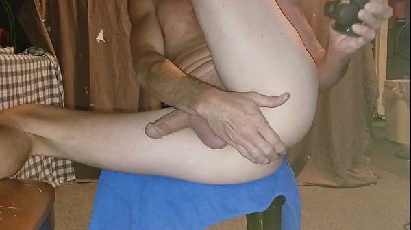 Солобой растягивает задницу большим дилдо