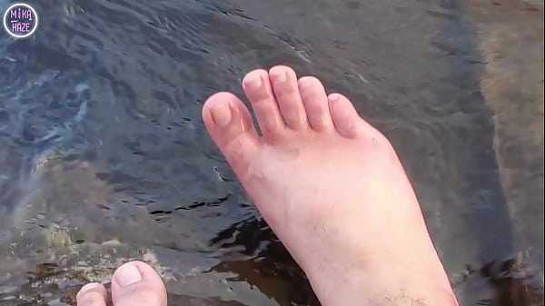Большие ступни Мики развлекались у воды