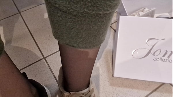 Прозрачные ноги и новые кроссовки на публике 4k