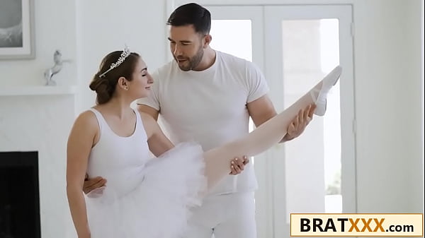 Миниатюрная молодая женщина с большими сиськами возбуждается во время репетиции балета 8 мин.720p
